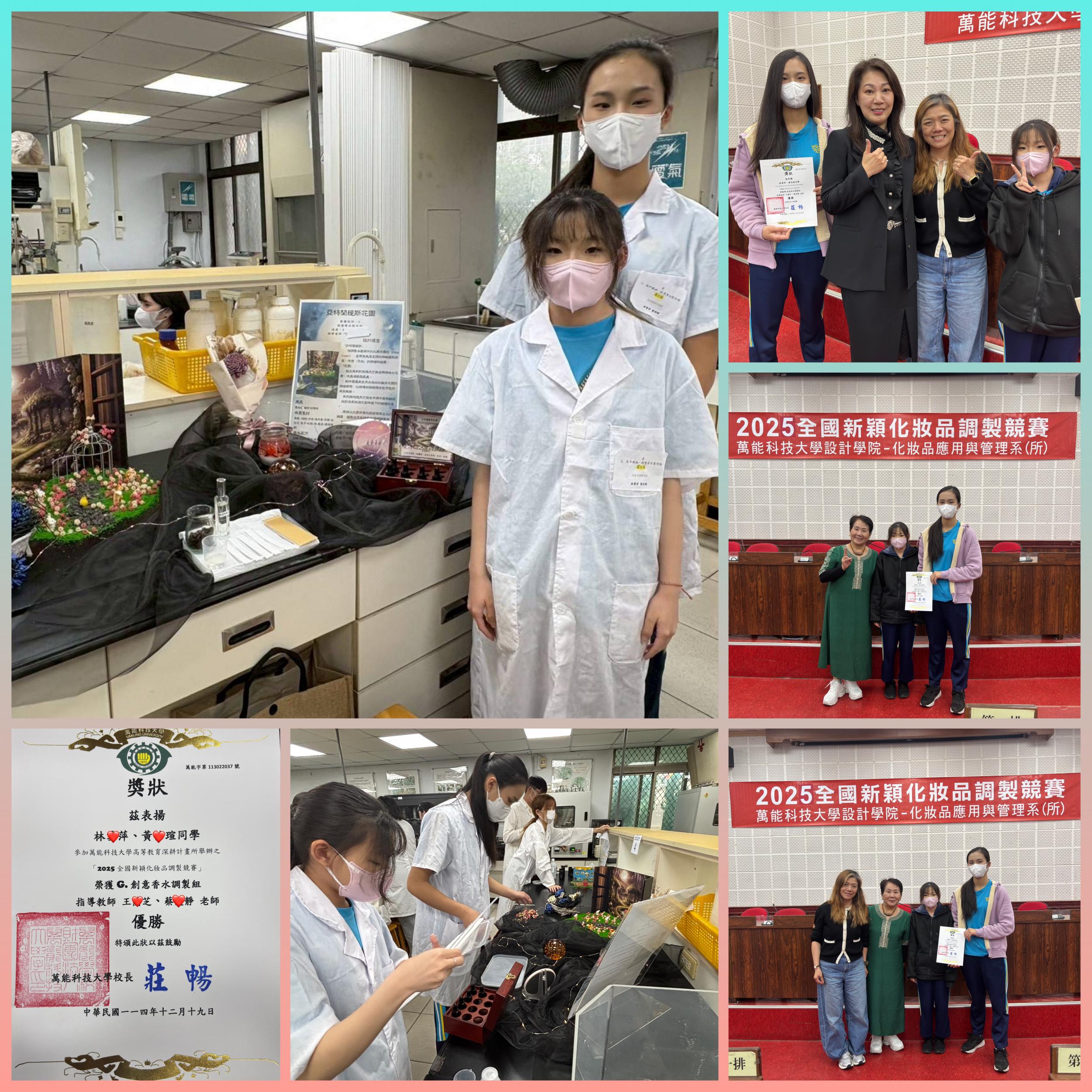 賀!時尚造型科參加「2025全國新穎化妝品調製競賽」時尚三忠林O萍、黃O瑄 榮獲 創意香水調製組 優勝!