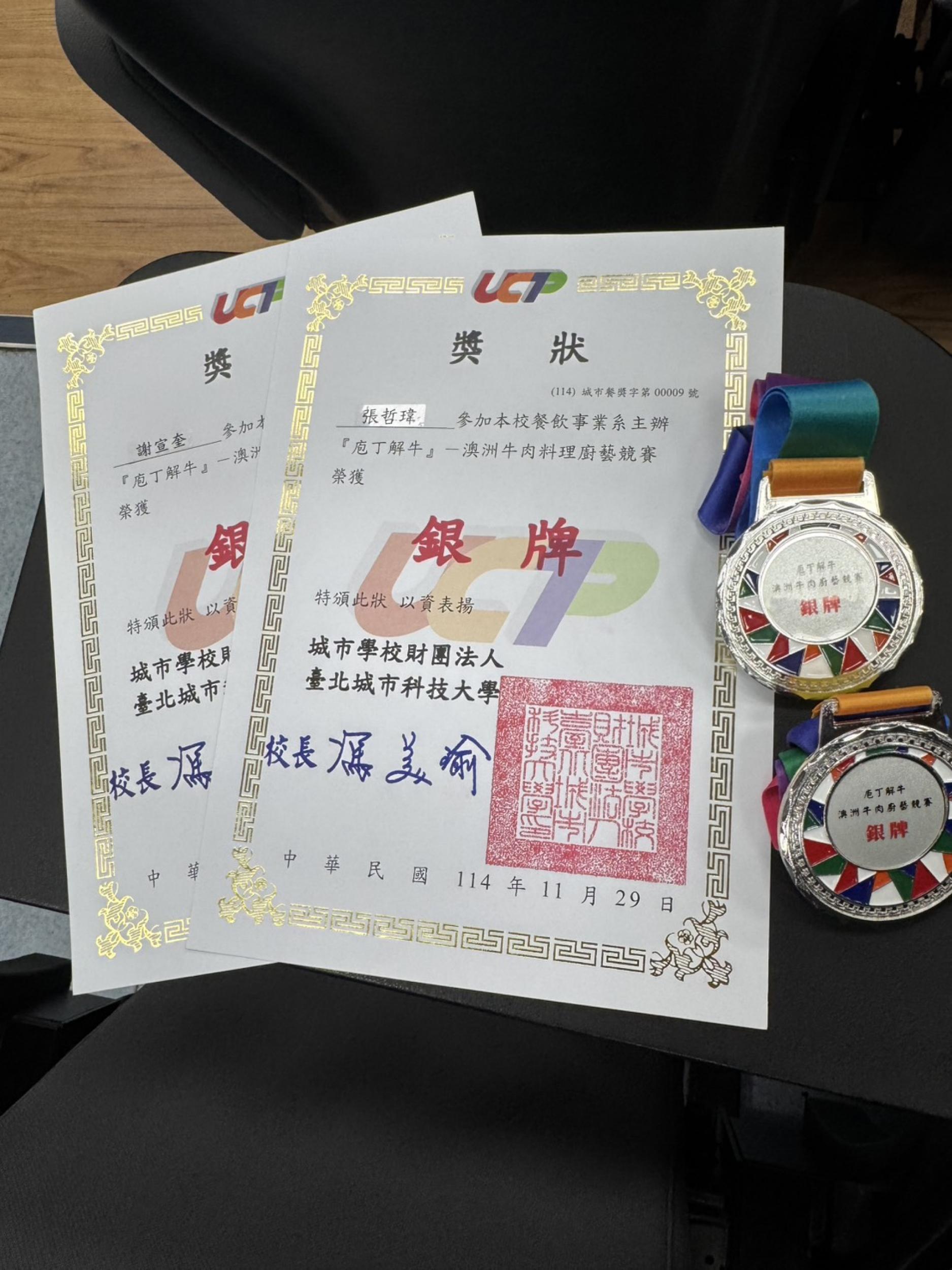 餐飲管理科!參加臺北城市科技大學「2025庖丁解牛澳洲牛肉廚藝競賽」,榮獲銀牌