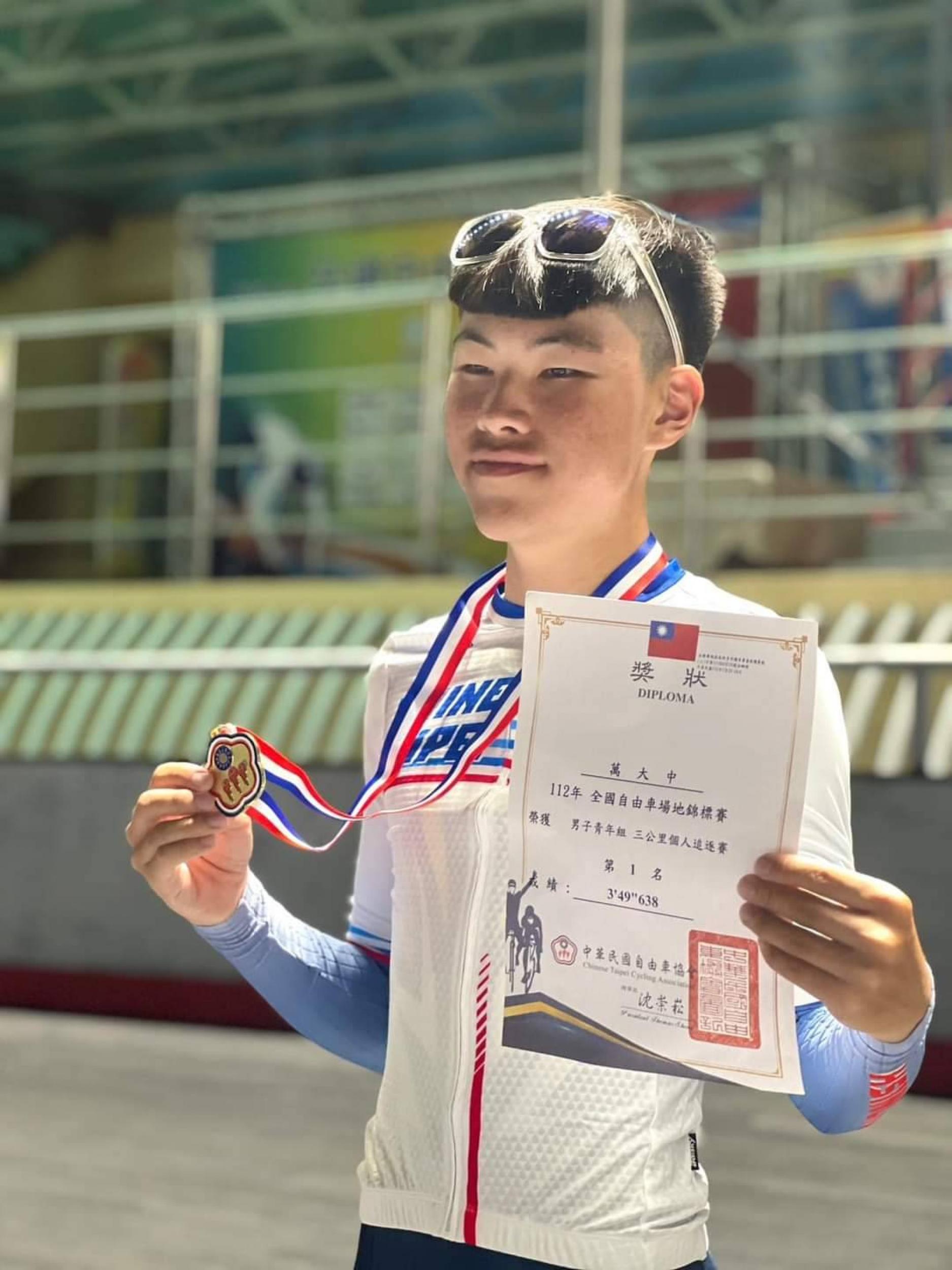 男青組3公里個人追逐賽 萬○中 選手榮獲第一名